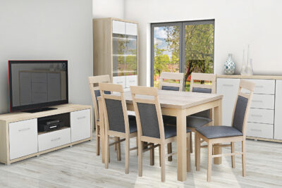 Obecnie w naszym asortymencie znajduje się ponad 200 różnych mebli, są to m.in.: stoły, krzesła, ławy, sofy i fotele. Przygotowaliśmy również kilka gotowych kolekcji mebli, które pozwolą urządzić całe wnętrze w jednym stylu.